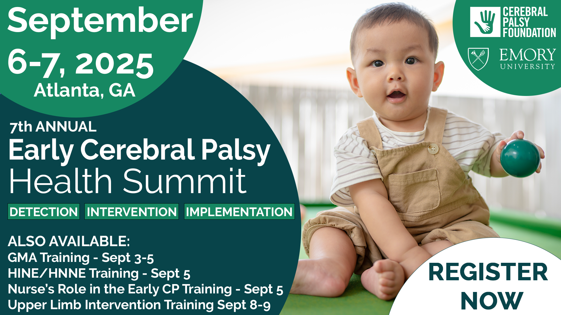 Saturday - Sunday, September 6-7 - Early Cerebral Palsy Health Summit -In-person workshops ($500)